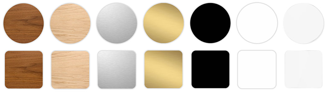 • Plexiglas : Noir, doré, argent, blanc, transparent